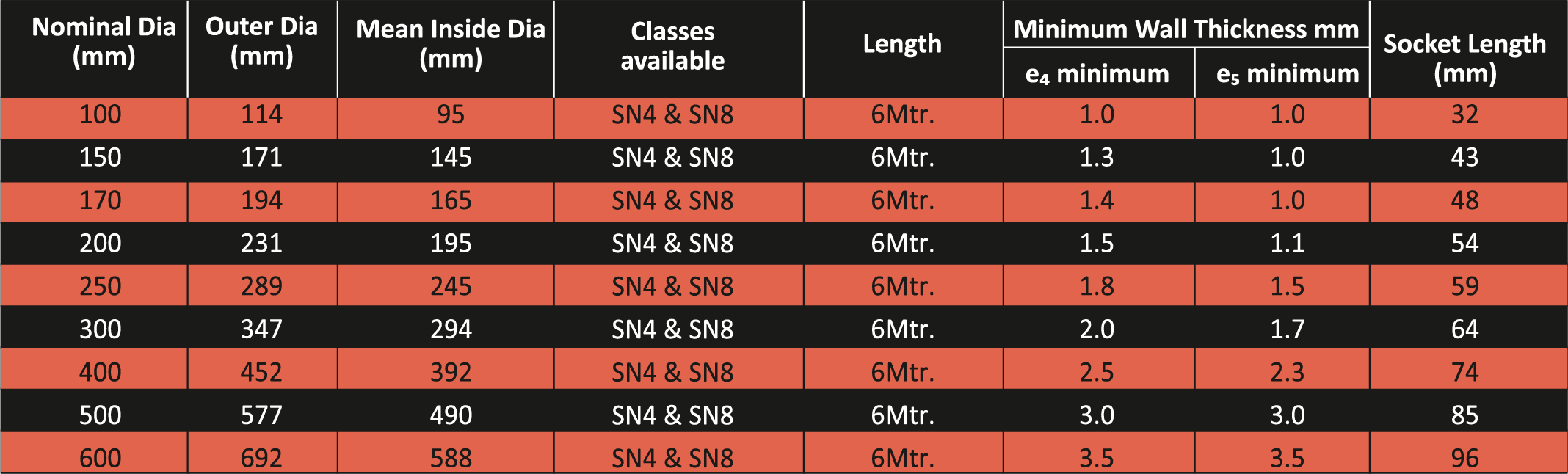 • High ring stiffness to withstand heavy ground & traffic loads